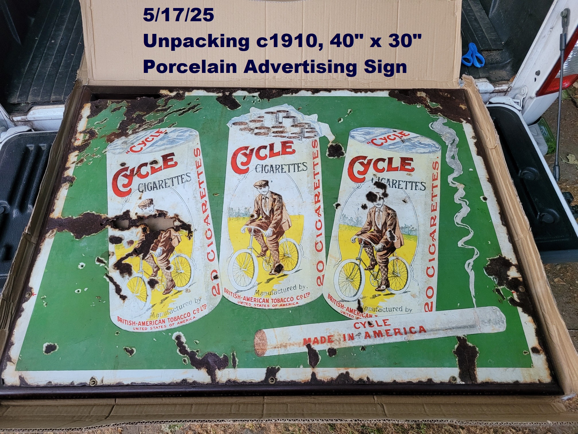 c1905 Bowling and Billiards porcelain sign, click
