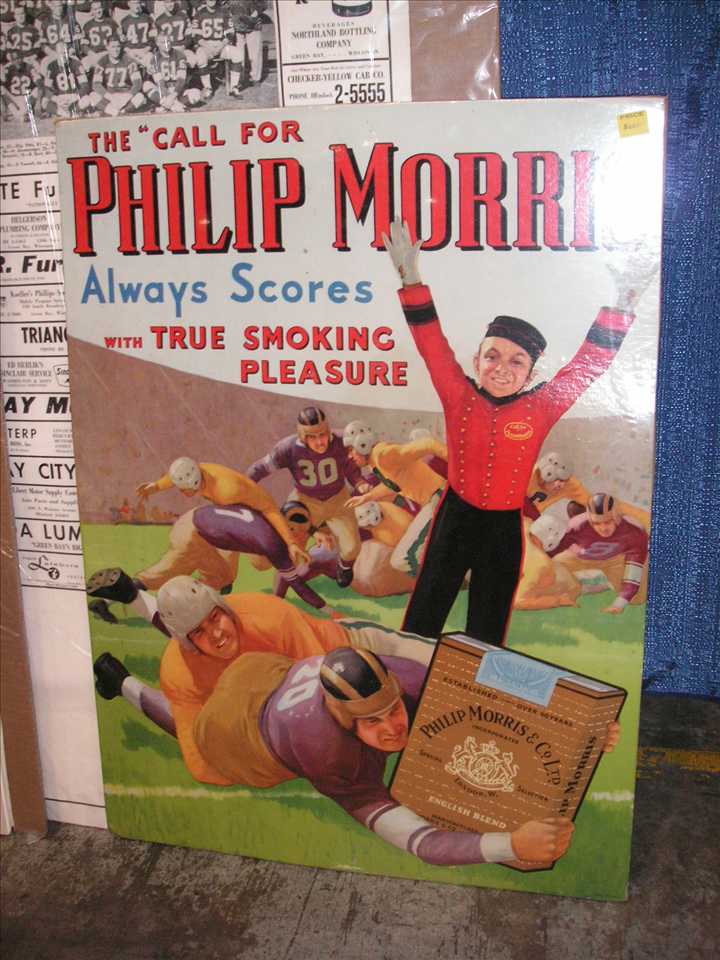up was a c1940 advertising poster for Phillip Morris Cigarettes