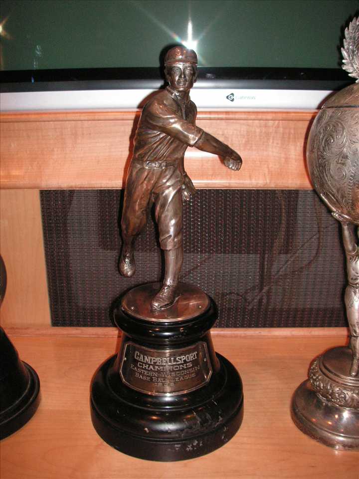 cool 11" tall 1908 trophy cup that has ring bats for handles,