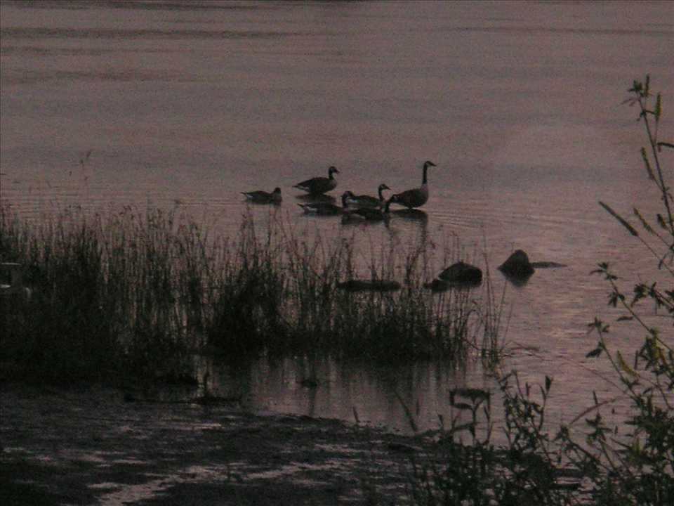 a group of geese were tranquilly paddling out into the lake...It seemed