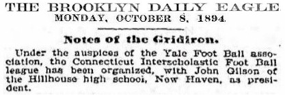 and Bridgeport High School played for the Championship of 1895. The Yale Athletic Association