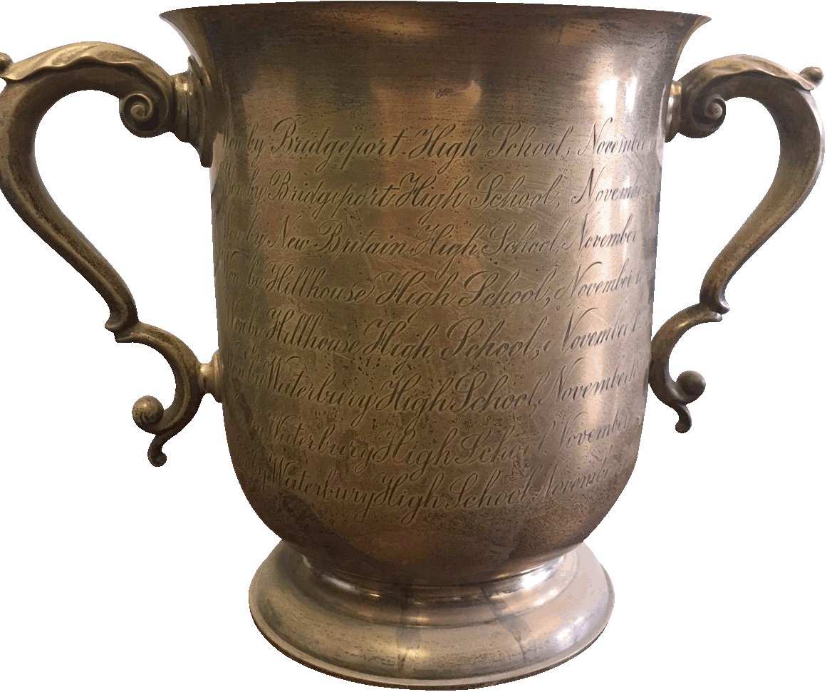 ....."The Yale Cup was also first awarded in 1894, and was awarded annually to the Connecticut State Football Champions until it was retired in 1901 and replaced with the Trinity Cup. The rules of the Yale Cup called for it to be retired to the first team to win it three times. Crosby High School of Waterbury won it in 1899, 1900, and