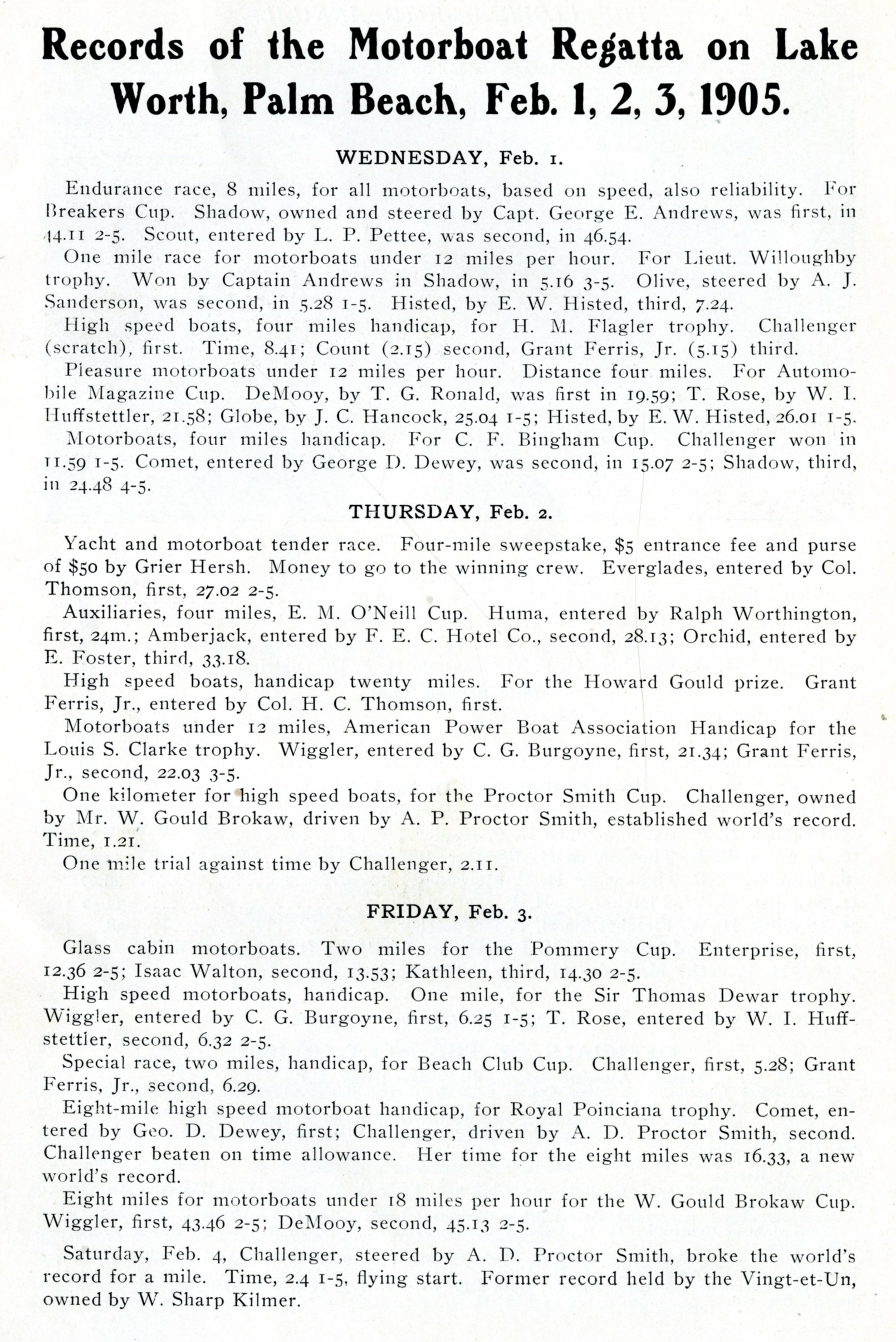 THE EARLY HISTORY OF POWERBOAT RACING IN PALM BEACH
