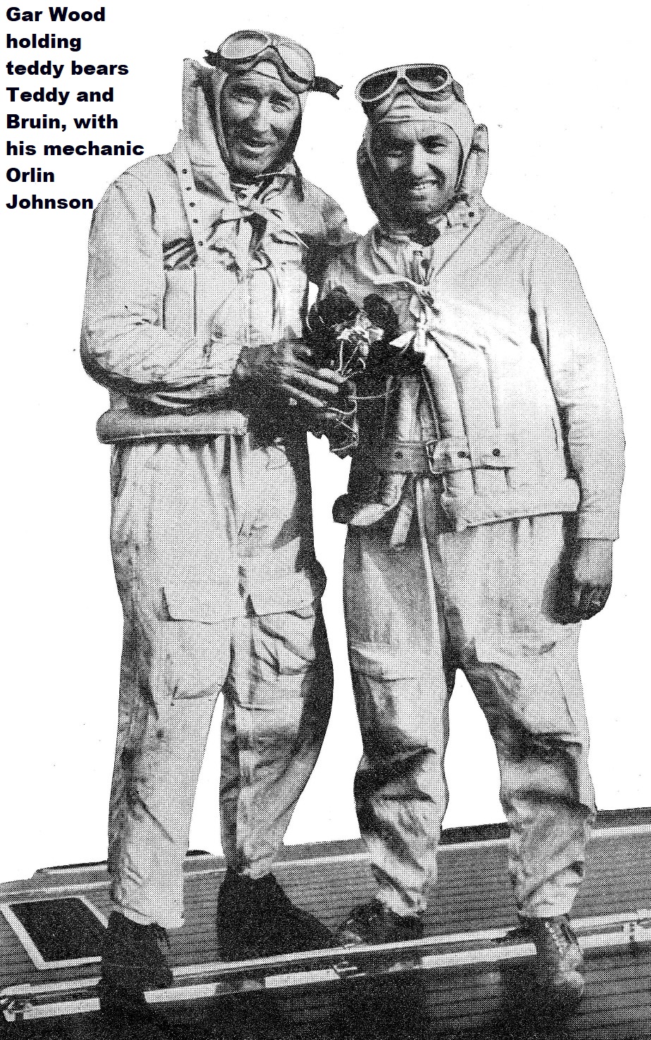 For thirty years Wood has been tying these teddy bears to his engines. A fortune cannot buy them from him. After he won the Harmsworth Trophy in England in 1920, an Englishman offered him Ł1,000 for one of them. Wood refused the offer.