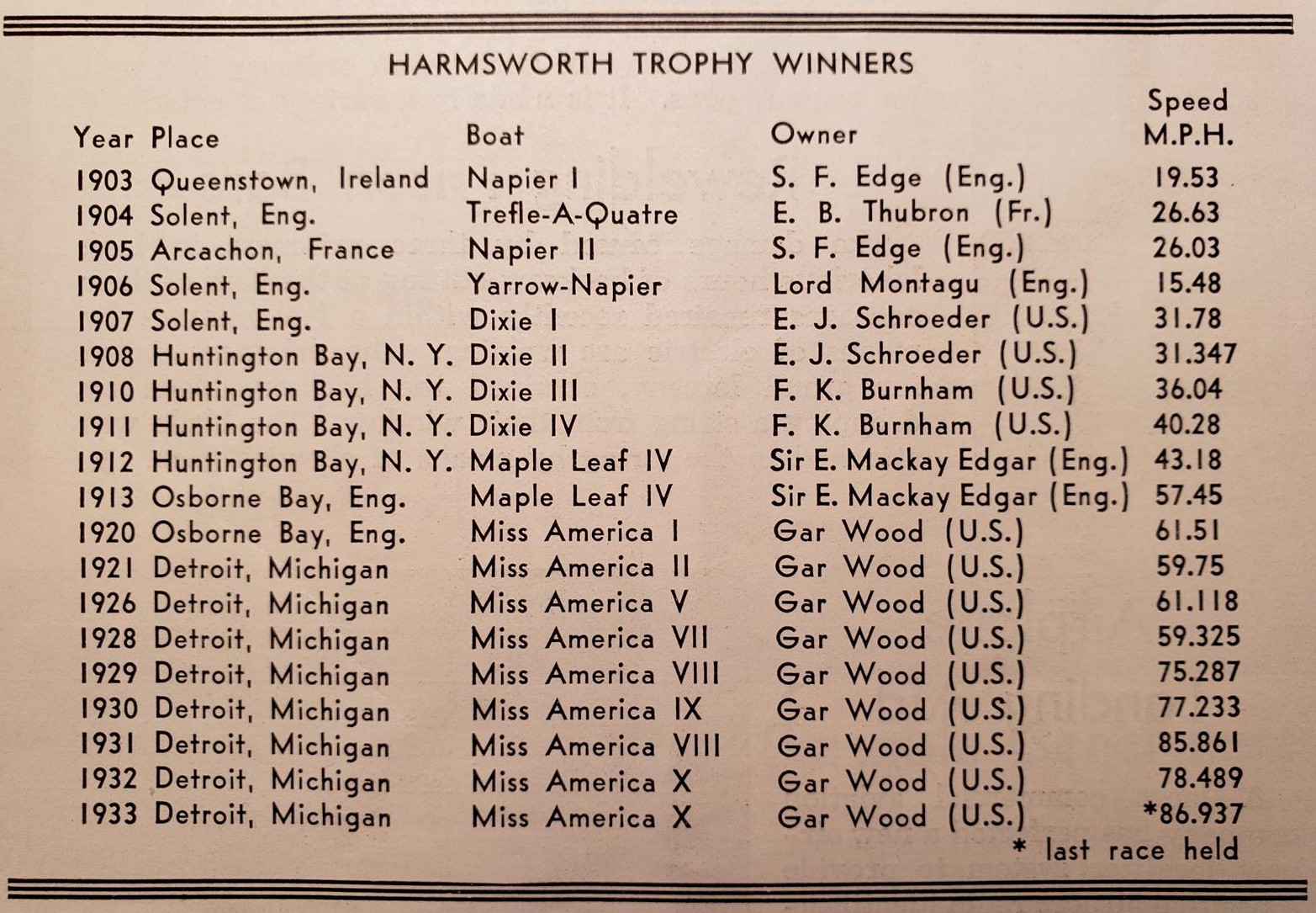 Gar Wood won it, the United States was technically considered the