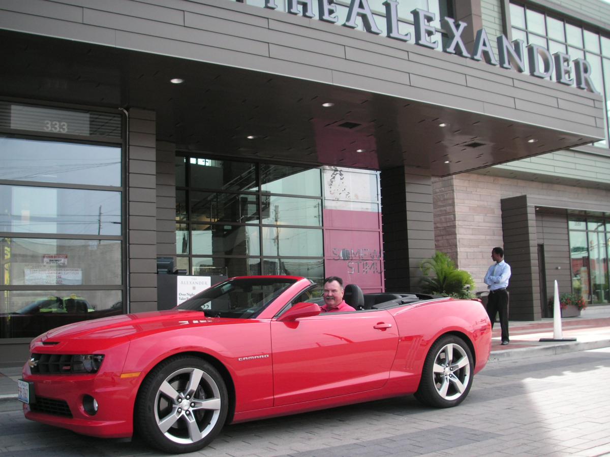 into the Hyatt...Top down in my snazzy red camaro, I pull up in the busy