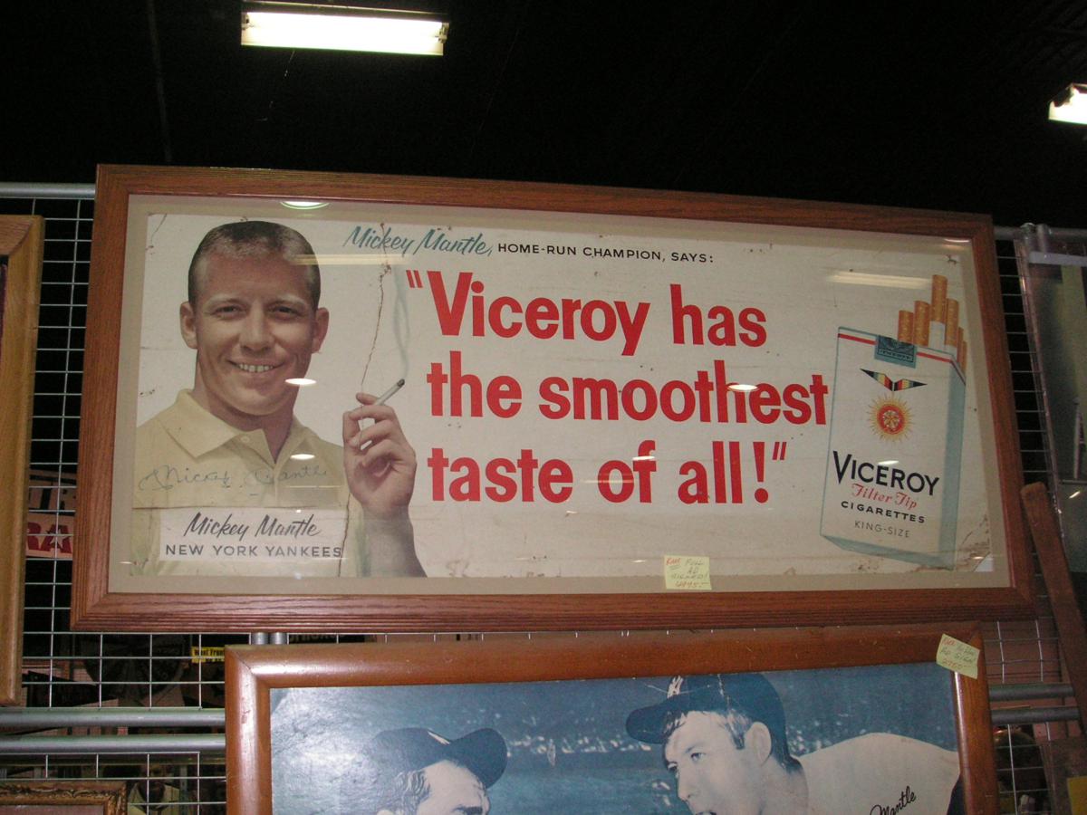 advertising sign for Viceroy Cigarettes featuring a crew cut Mickey