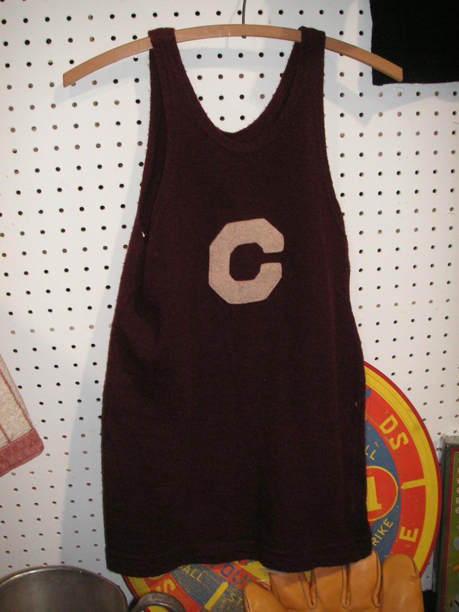 football jersey, c1930, black with maroon trim, number 4 on the back