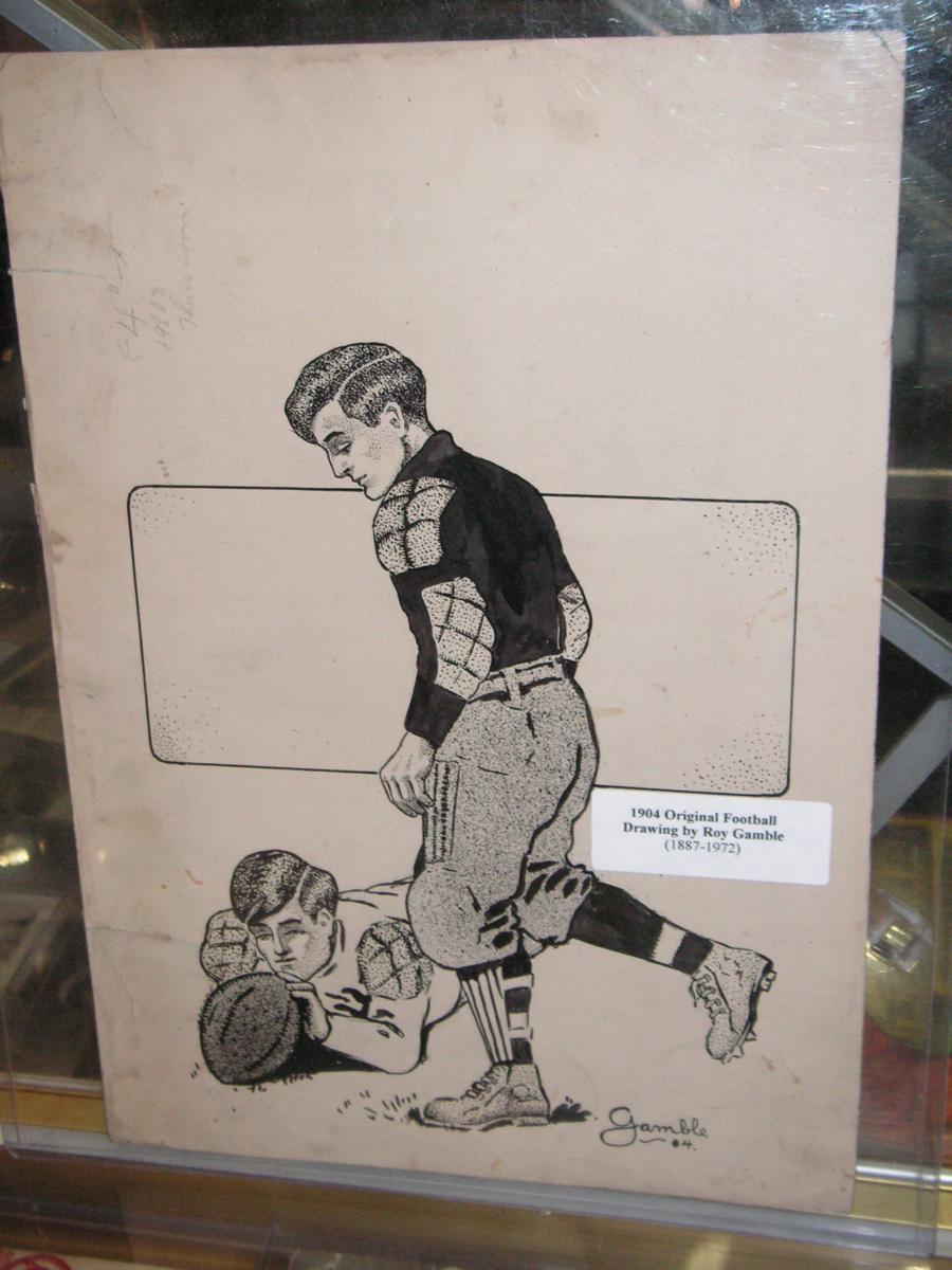 were two pen and ink drawings of football players by Roy Gamble 1887-1972,