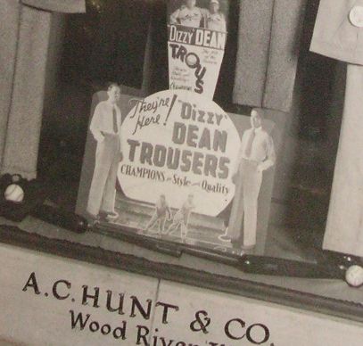 with small advertising posters for Dizzy Dean Trousers. The posters were