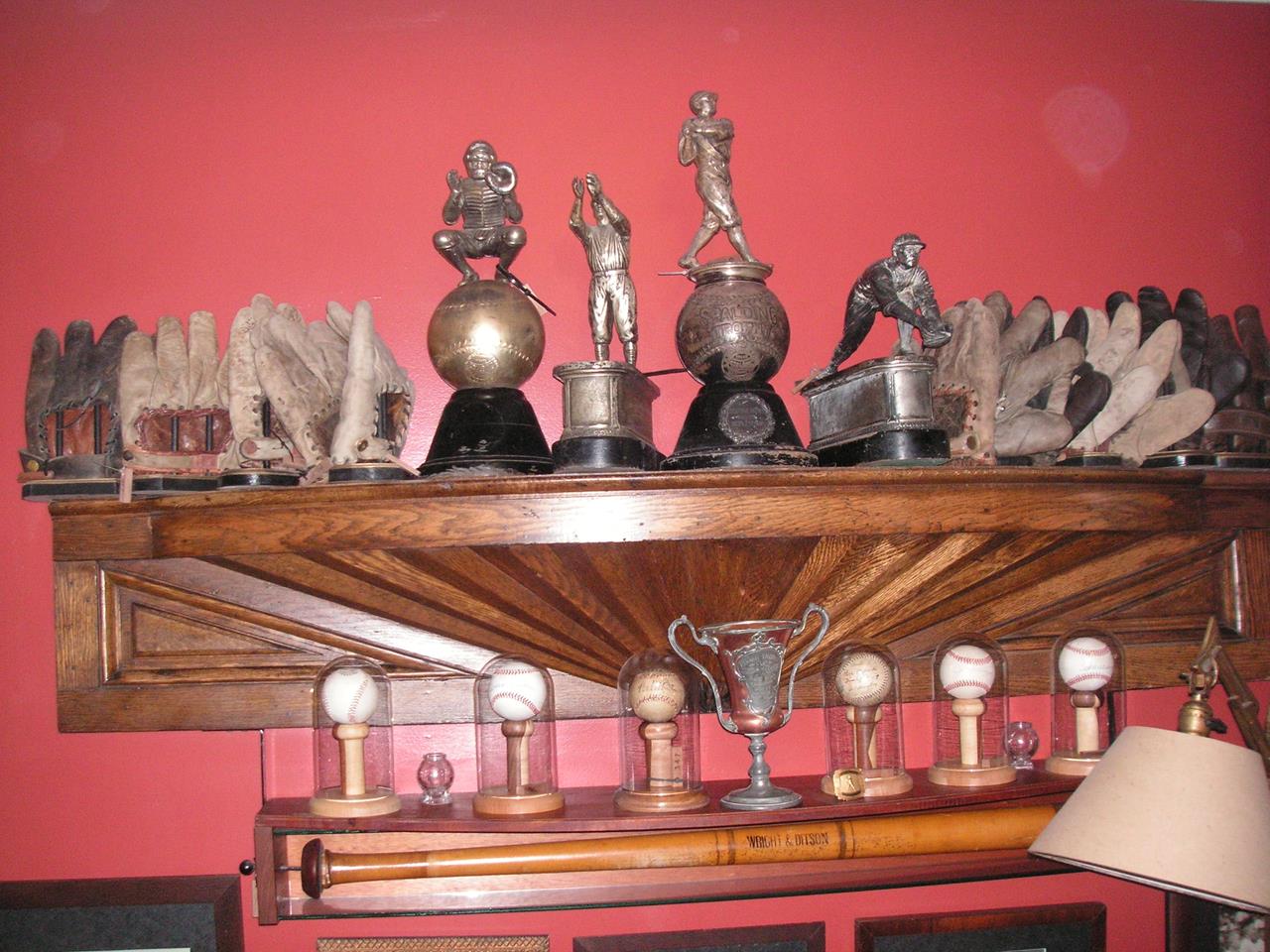Nancy and I were at a local antique/flee market looking for unique/antique items for our home when I came across a 1950’s Wilson, Billy Martin baseball glove. I put it on my hand and it felt great and had that old-time leather smell – from that point I was hooked. I was collecting everything baseball for a while until I realized that it was impossible to do that so I started focusing on pre-1920 baseball equipment. In addition to BB equipment I love to collect vintage baseball wire photos that contain baseball stars with children and Spalding baseball