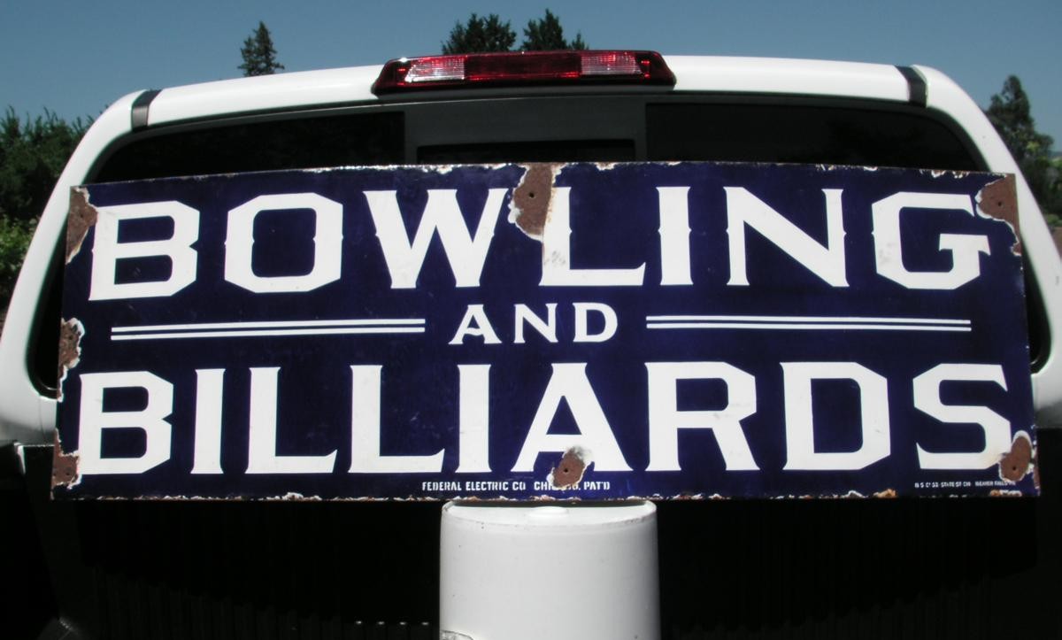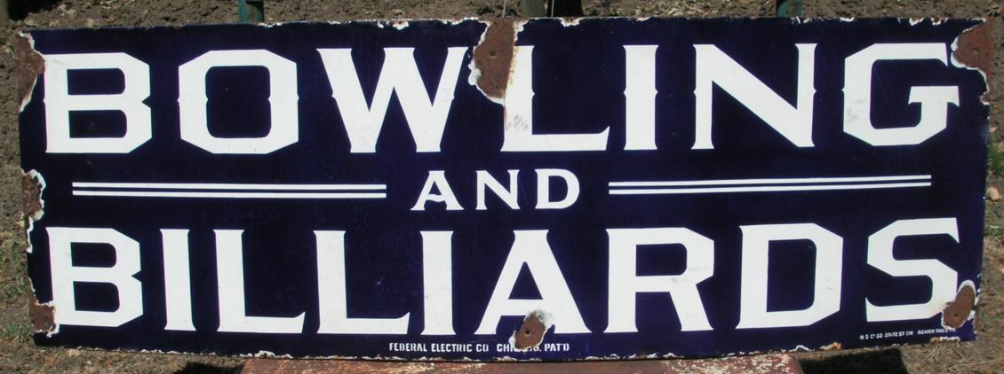 trigger! A lot of both Bowling and Billiards were played in Europe in the 19th and early 20th century….But this sign in pure 100% American, prominently marked Federal Electric Co. Chicago