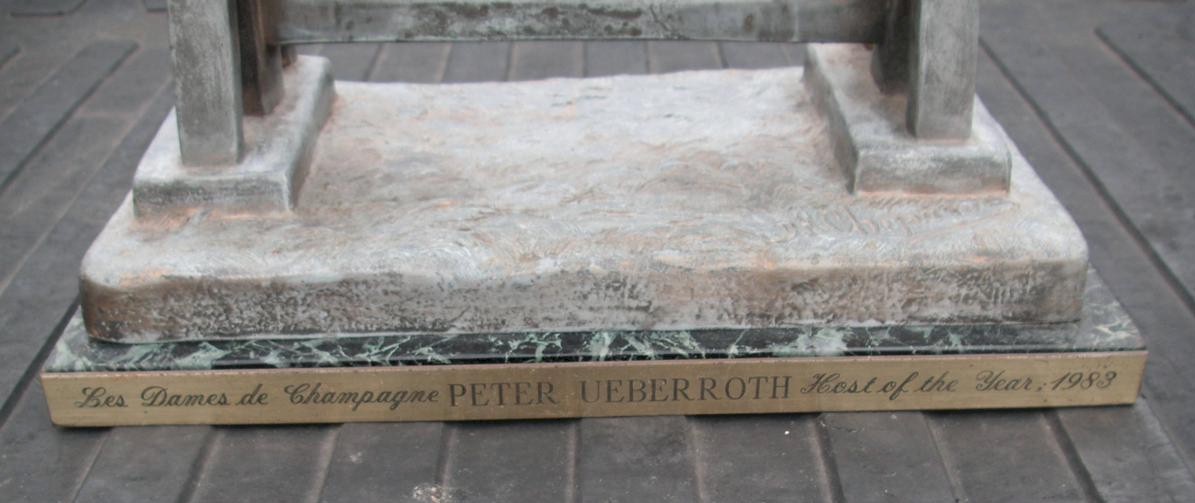 After setting up the rendezvous to pick it up the seller said she would look for the “tag”…When I went to pick it up she had found it!!....only it wasn't a paper tag like I expected....but an engraved metal plate...didn’t say Olympics but did say Peter Ueberroth…the Los Angeles Dames De Champagne appears to be a group of ladies who put on charity events…Sounds like wealthy socialite trophy wives….typically probably all belong to the exclusive Cal Club in Los Angeles….Seller said got it from a lady who worked for Ueberroth…I speculate Ueberroth’s wife probably wanted it out of the house and he gave it to an employee…eBay seller said she bought it about 20 years ago at the “employee’s” garage sale…eBay seller said she was recently cleaning out a storage area and came across it and put it on