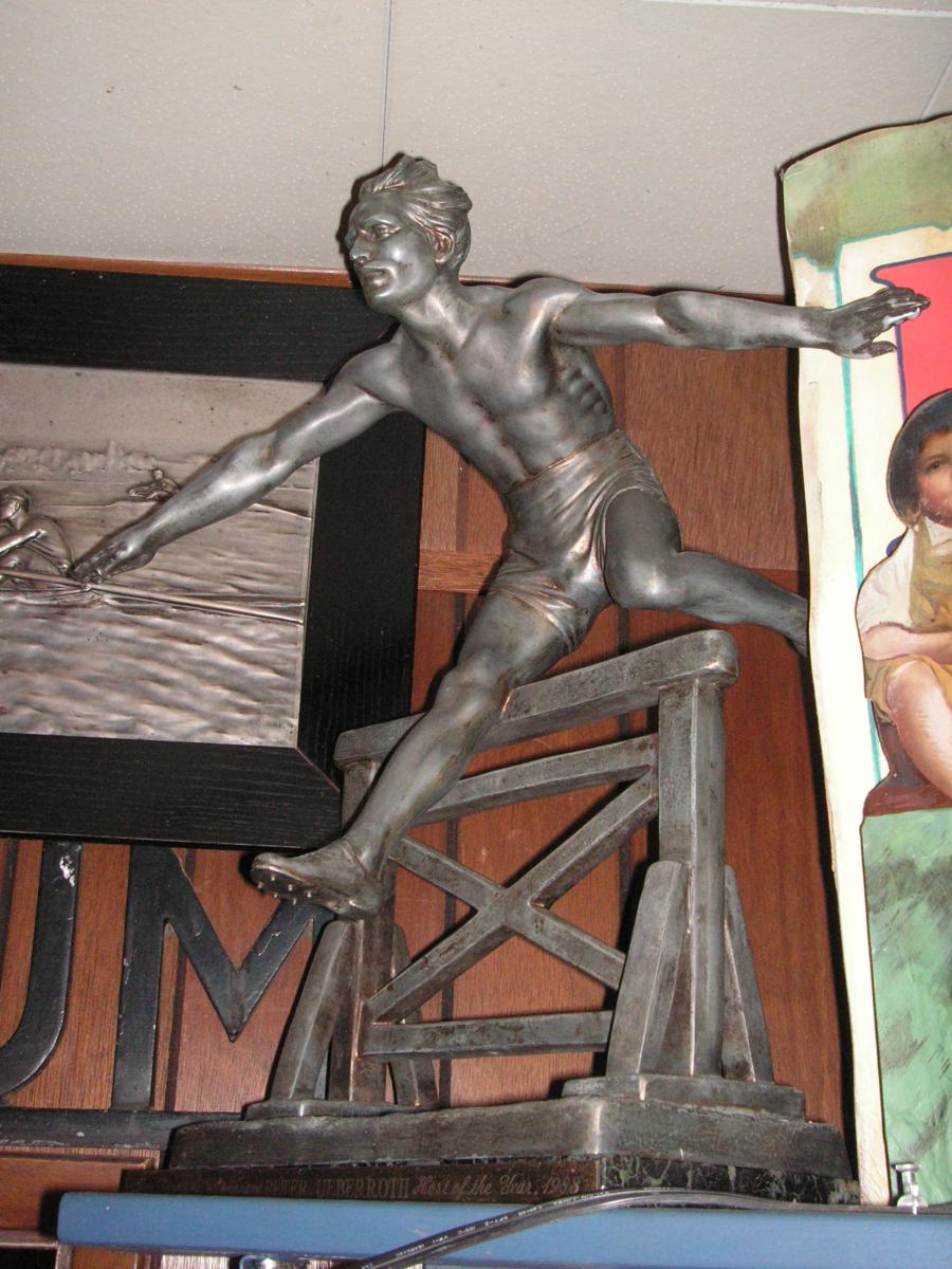 his c1920 19 inch tall statue of a hurdler was sculpted by Demetre