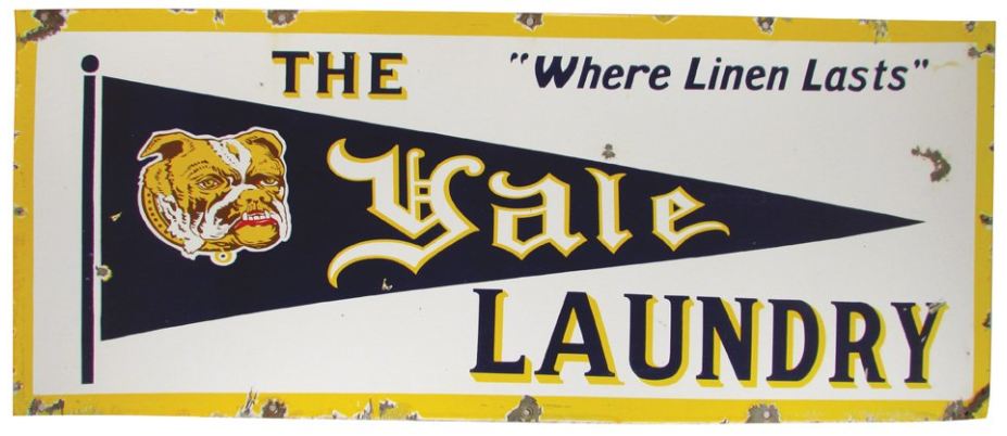 pieces...From there I looked it up on line...It looked porcelain in the photo and sure enough it was...Porcelain sports related signs hardly exist...Of course my Yale Laundry isn't sports really...but