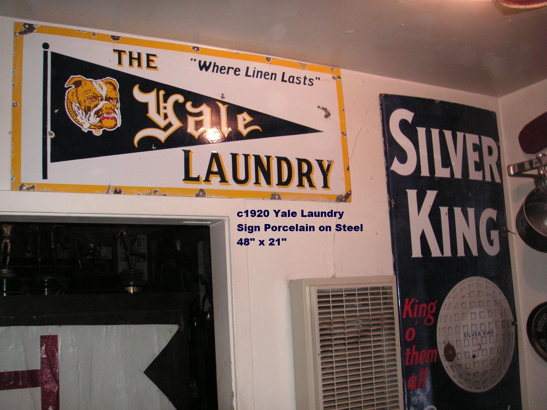 handle Walnutts, who is very knowledgeable on advertising signs said he'd seen Yale Laundry signs before but nothing close to mine for graphics...