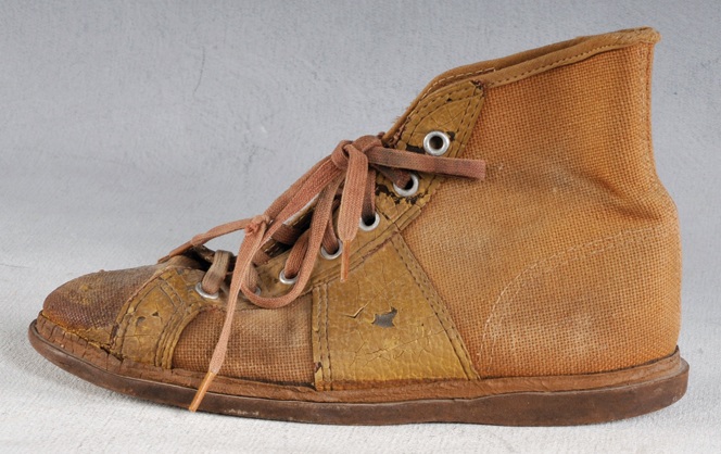 T Block Green.jpeg (3725 bytes)his Keds basketball shoes advertising display was auctioned by LegendaryAuctions.com of Lansing Illinois on February 1st 2013 for $777.00, Lot 429. I would date it from about 1925 to 1935. I believe it was designed to display one of the shoes it advertises. Goodrich FB Shoes Sign_890x1052.jpg (130137 bytes)I have a similar sign for Goodrich shoes with a die cut football player that also appears designed to hold shoes.  If you aren't familiar with this kind of sign it may be hard to comprehend because of the way its photographed. To make it even more so,  the easel is missing on the back. When properly displayed, the white part facing the basketball player would be folded back and the easel on the back, which is now missing, would swing out and hold up the folded back section. A shoe would then be placed on the folded back section for display in the store.