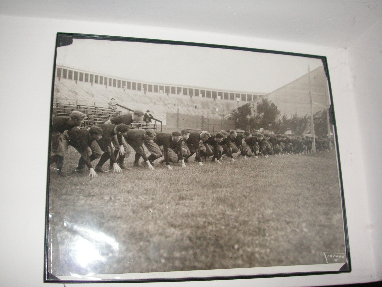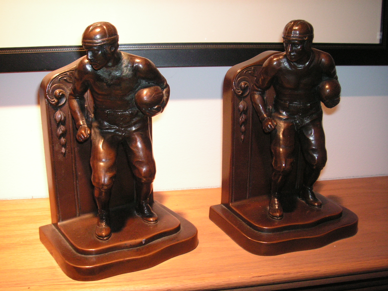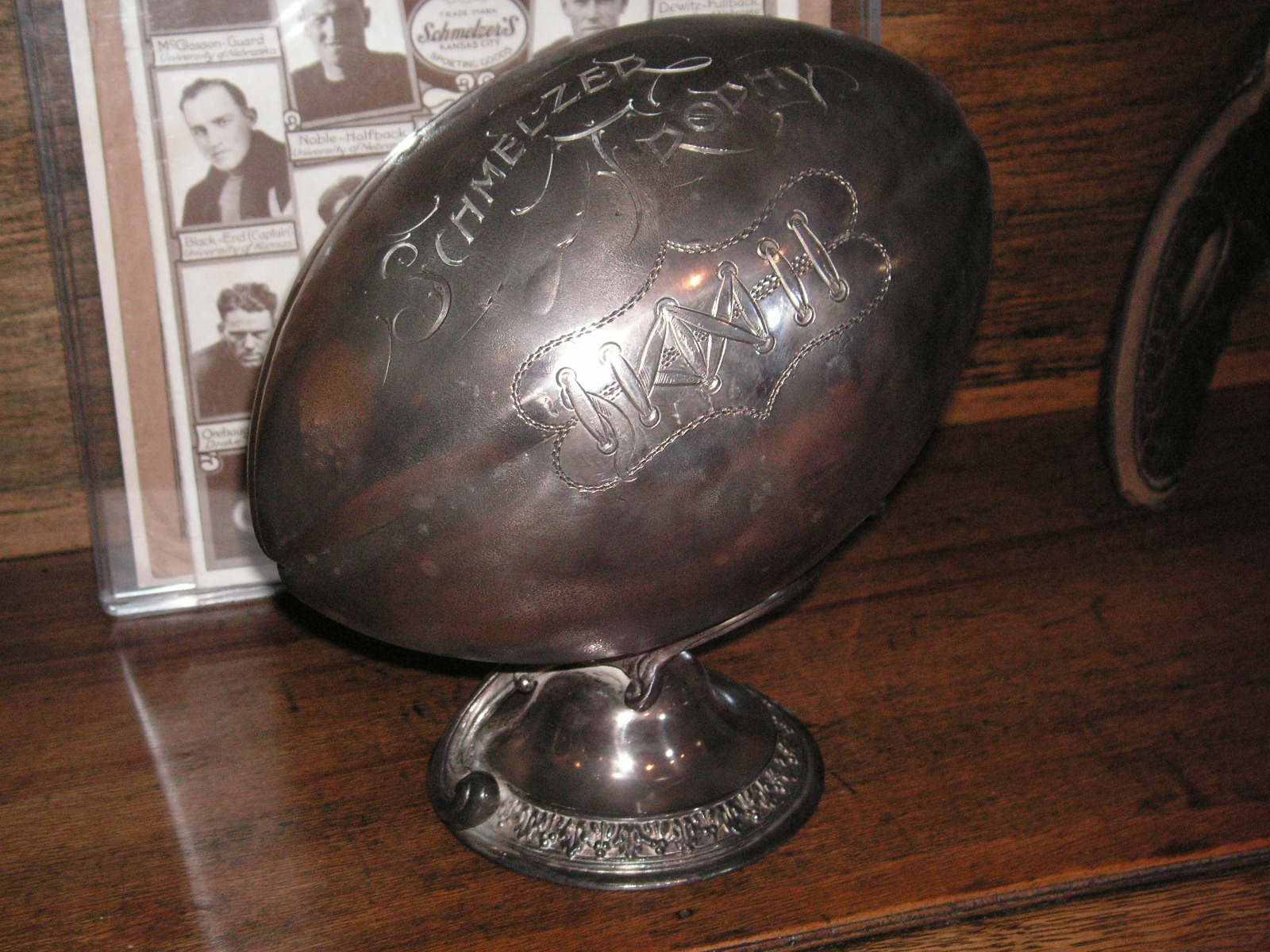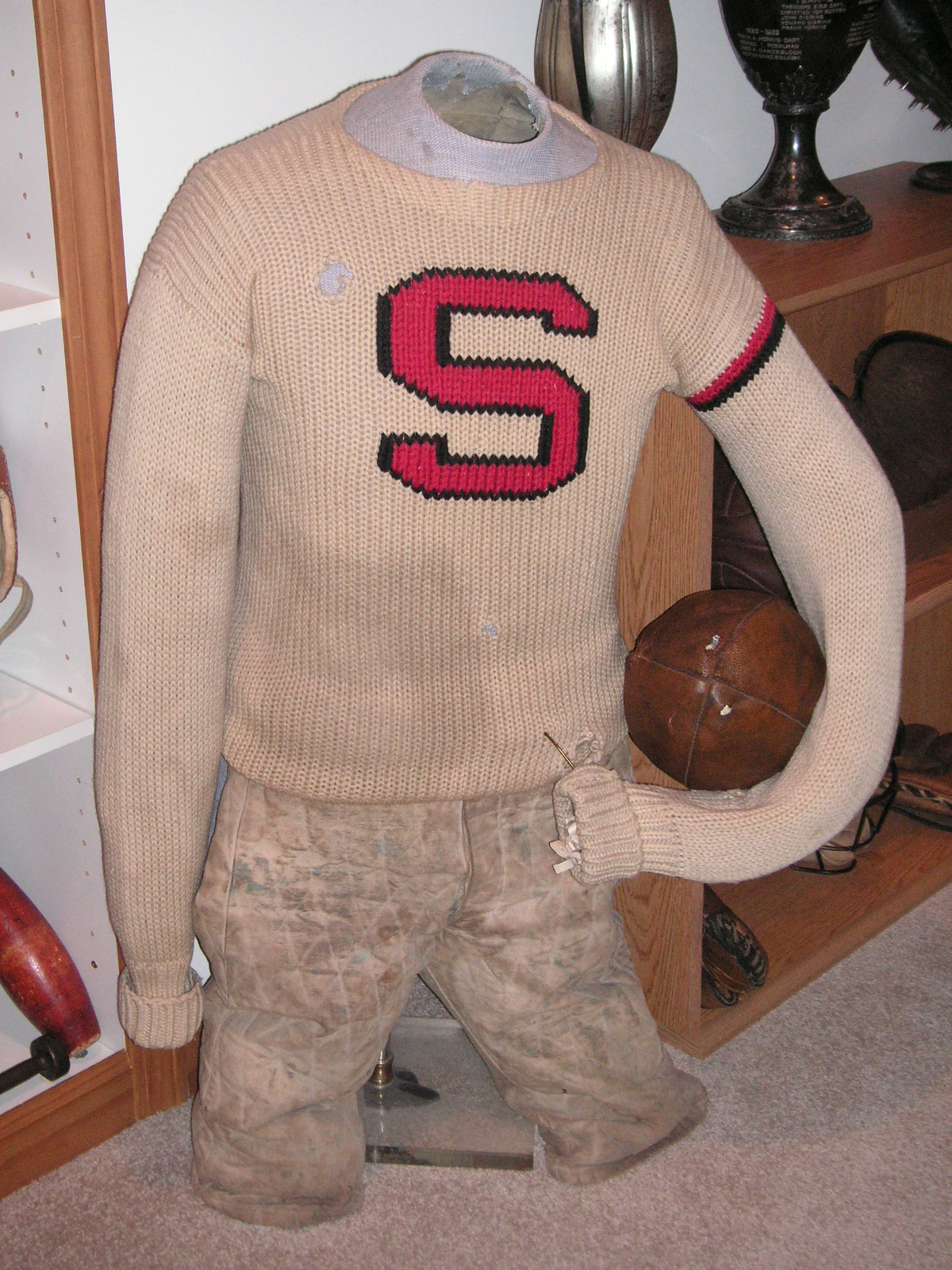 "I've been collecting vintage football items for about 13 years. I started by just wanting 1 leather football helmet. Loving the game of football so much as a player and coach, I was intrigued with the roots of the game. I searched every antique shop I came to with no luck for over a year. My parents found 2 old 1940's leather helmets at an antique shop in Wisconsin and bought them for me for Christmas 13 years ago and that was the start of my obsession. I enjoy having a nice assortment of items that span the decades the game has been played. I often wish I could go back and talk to the men who used to