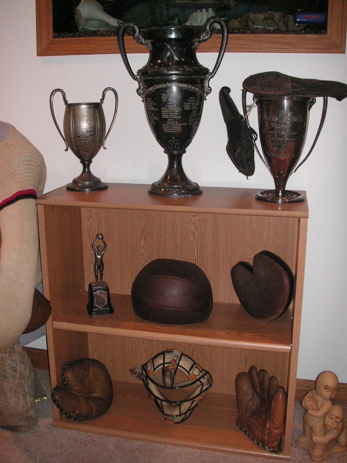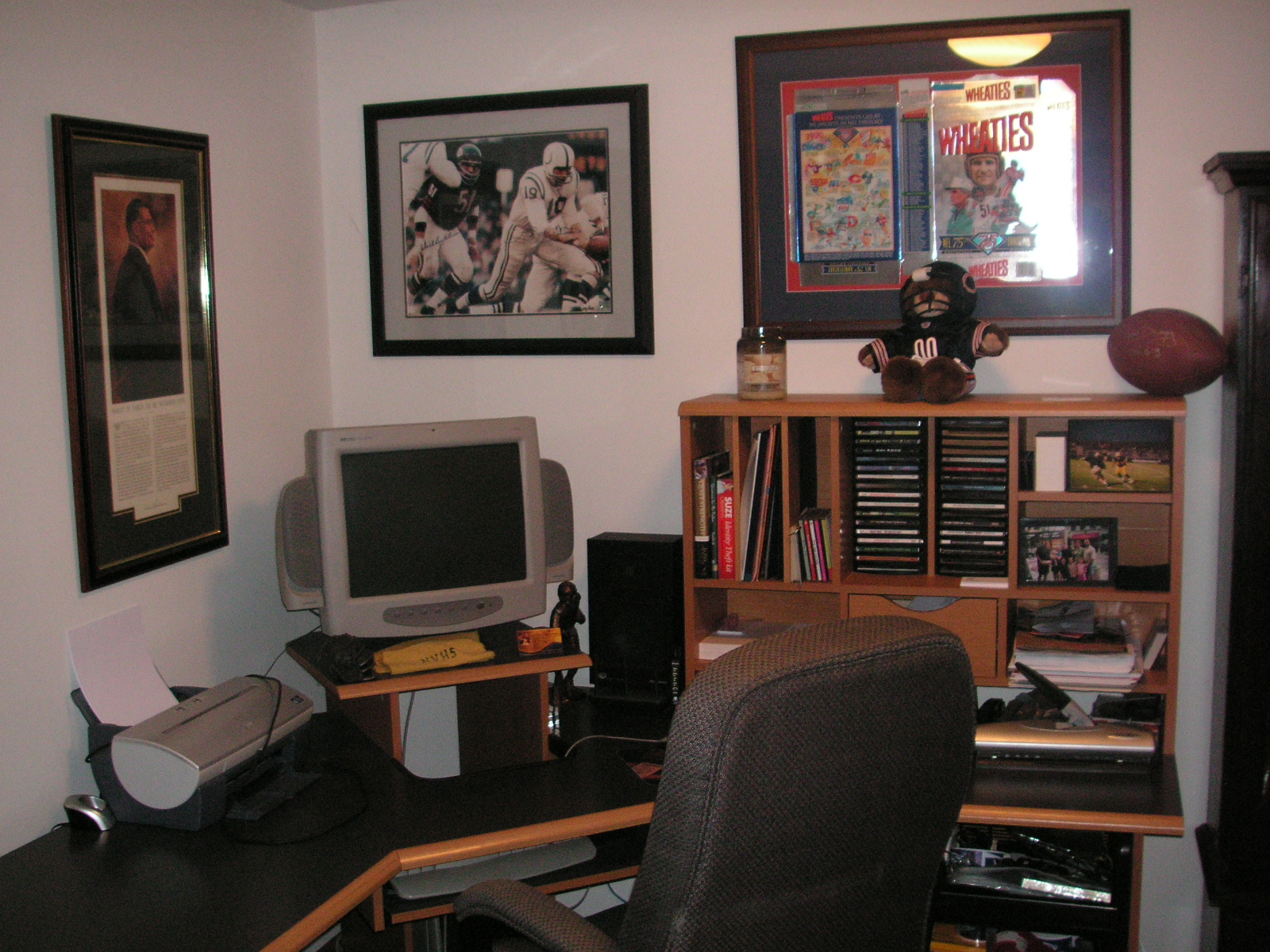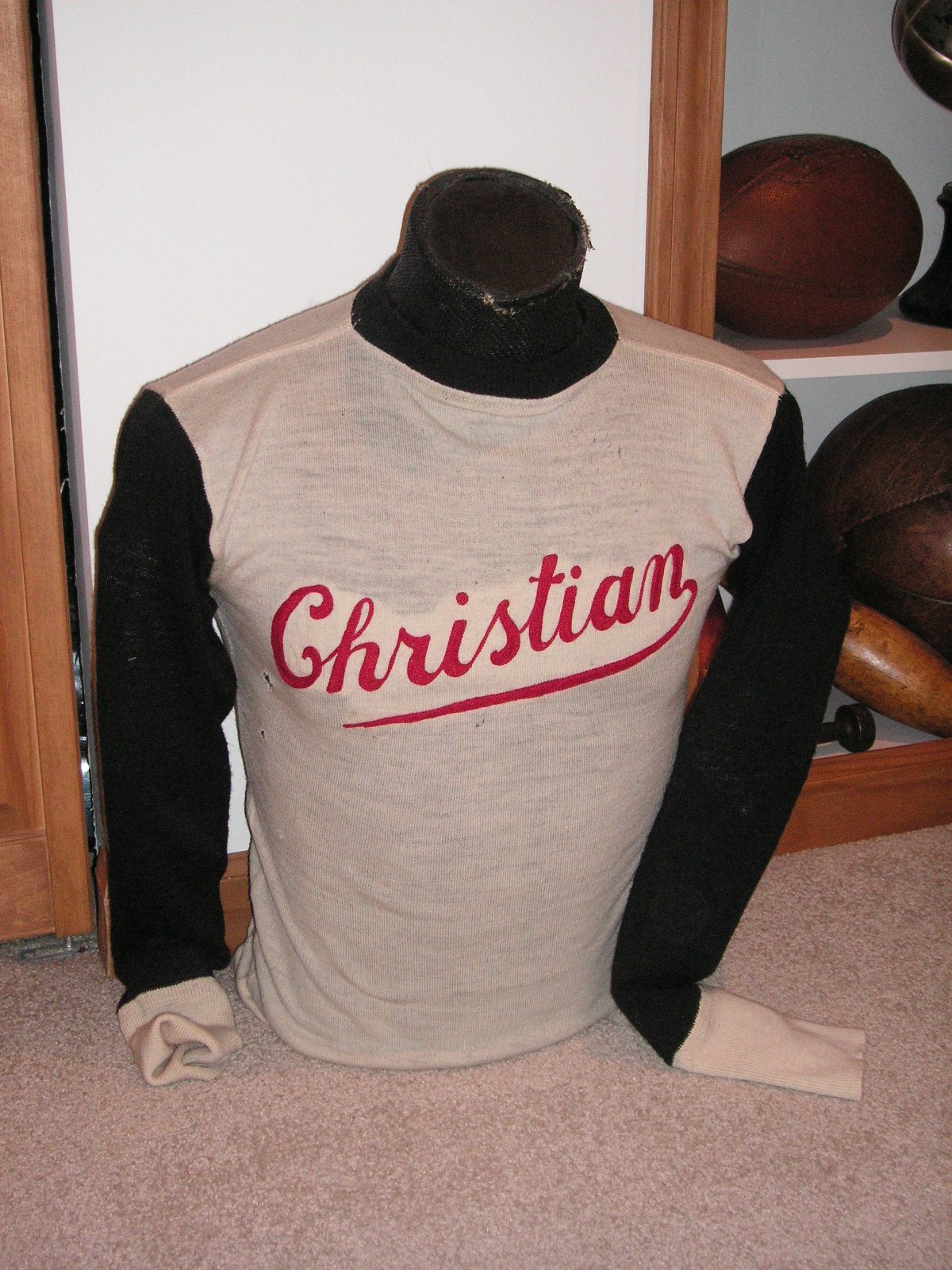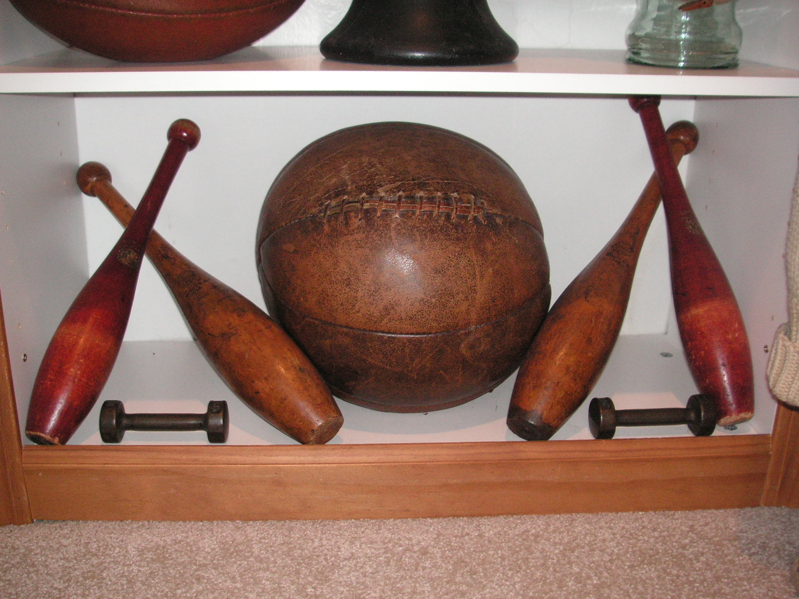 "I've been collecting vintage football items for about 13 years. I started by just wanting 1 leather football helmet. Loving the game of football so much as a player and coach, I was intrigued with the roots of the game. I searched every antique shop I came to with no luck for over a year. My parents found 2 old 1940's leather helmets at an antique shop in Wisconsin and bought them for me for Christmas 13 years ago and that was the start of my obsession. I enjoy having a nice assortment of items that span the decades the game has been played. I often wish I could go back and talk to the men who used to