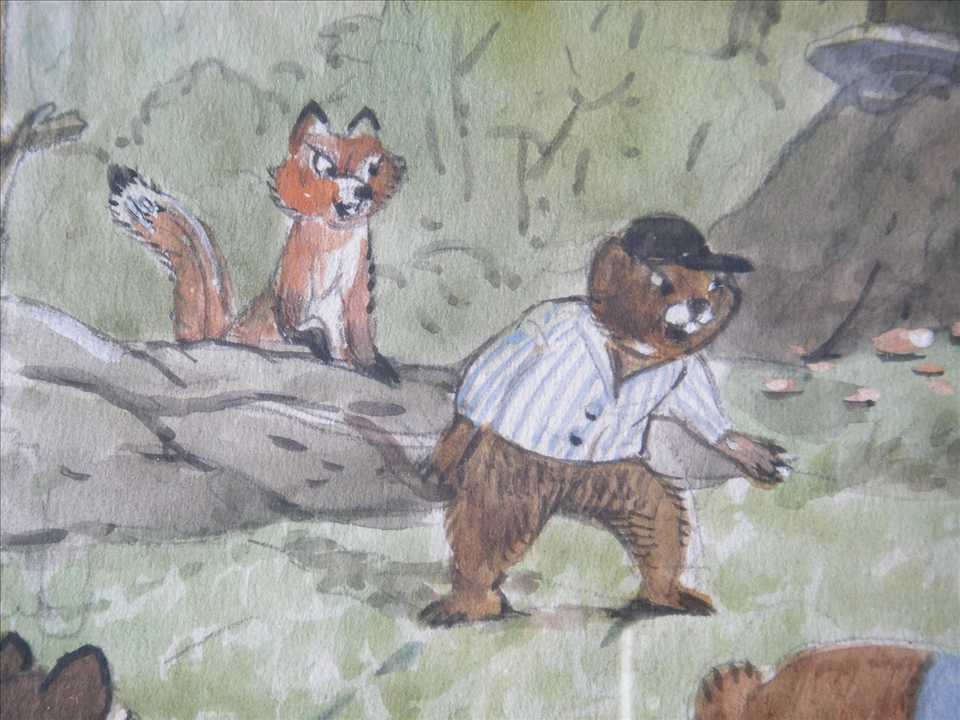 to get a closer look I could see it was a scene of beavers playing a