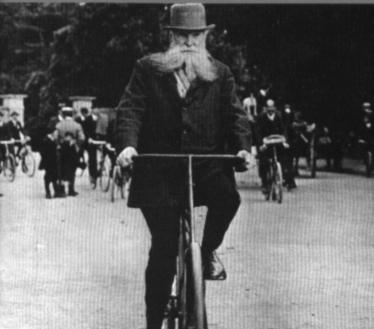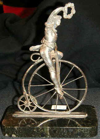 In an antique sports collection, whether graphically or three dimensionally, no better image represents the bicycle than the archaic High Wheeler, also called the “Ordinary”.