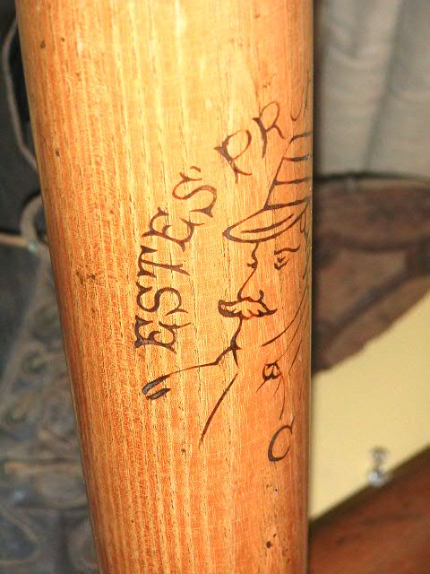 He showed me the now famous Estes bat, and I was very impressed. The image of the player with a handle bar moustache wearing a pillbox cap was so striking, so 1880’s. I think it was like $250-$300 he wanted for it. Not a lot of money, but as usual I always had several other deals working at the same time and money was always tight. He said it wasn’t going anywhere and that there was no rush, and that I could buy it whenever I got the money, and I remember watching him put it back in his closet. That was the last time I would see the infamous Estes Bat for many years.