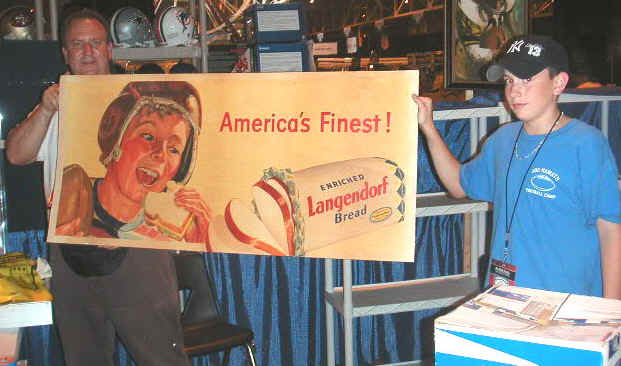 Kanuit, of Vintage Sports Collector from Los Angeles, felt the great pieces aren’t showing up because they get auctioned in the big sports auction houses. I ran into legendary collector Gary Cypres of Los Angeles, at the airport on the way out of town. As we discussed the convention, Gary shared his feeling that eBay has had an affect. I’m sure everyone would agree eBay has had a major impact on the hobby. These reasons, and the fact that the great pieces could simply be drying up are all good explanations why this years National lacked punch. There seemed to be less quality than last years National in Atlantic City. For instance, I didn’t see one power advertising sign, (that I couldn’t afford), like say, a large die-cut stand up of Red Grange endorsing sports equipment, or, an early sports related tri-fold tobacco window display. Frankly, I didn’t see anything ground shaking at the show. In the old days, before