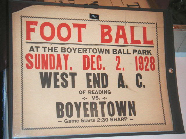 1928 football broadside game poster for the West End Athletic Club of Reading vs. Boyertown, nice little poster, note “foot ball” in two words, 14” wide by 11” tall,
