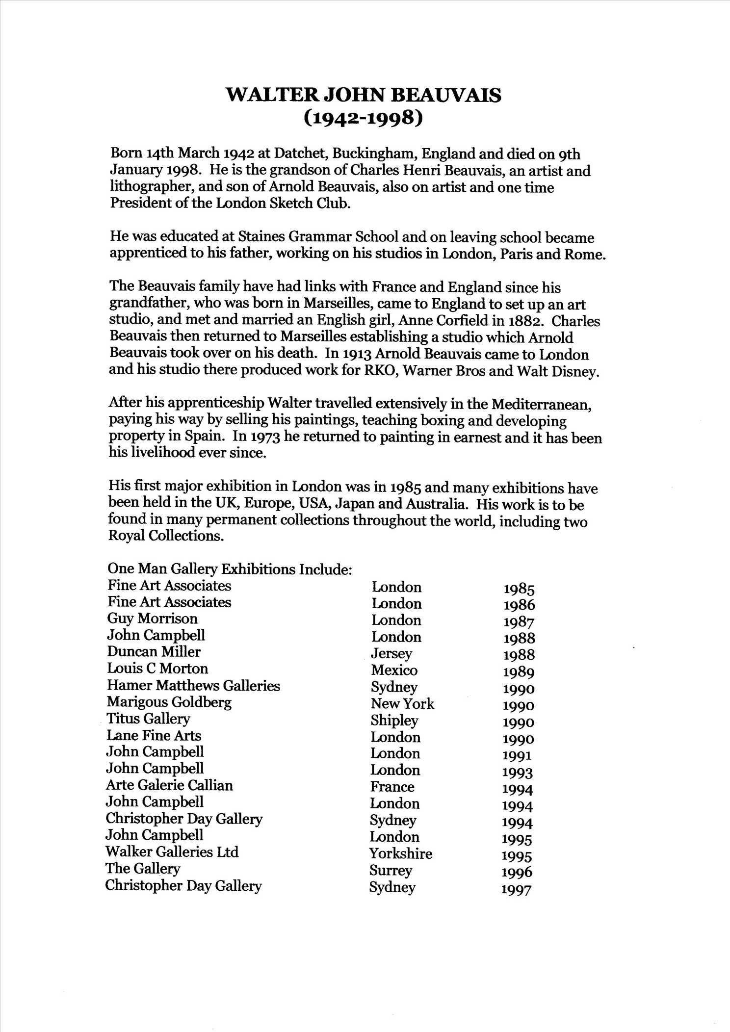 Further biographical information has been received on