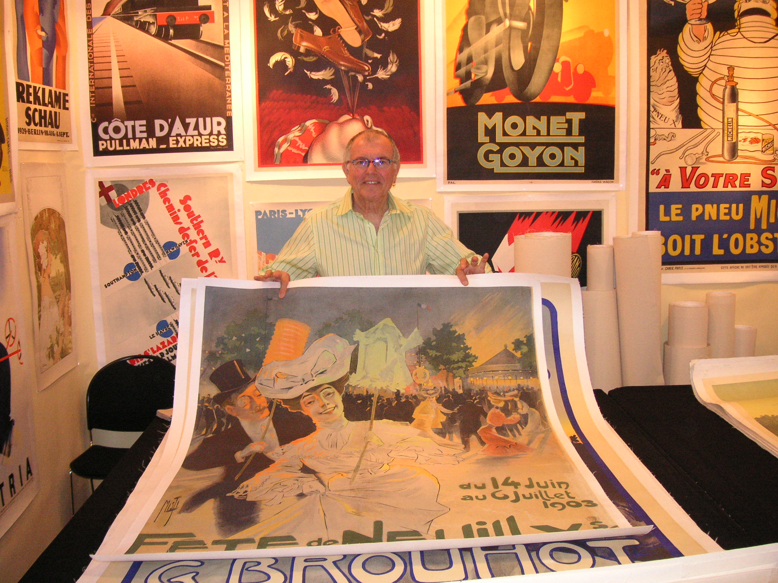 Gilles Didier of Poster Treasures in Paris, showing his wares