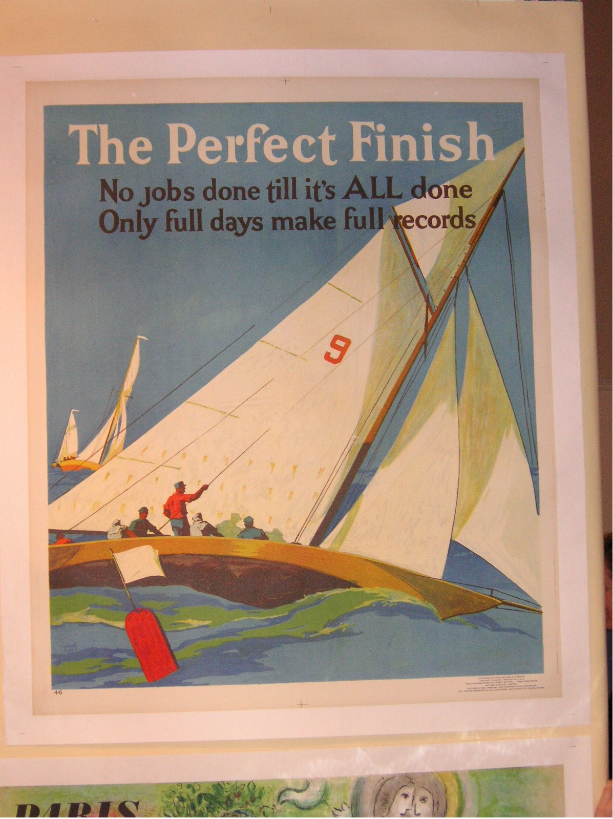 I like the American ones best. Mark Weinbaum of New York City is about the only dealer left doing the San Francisco fair that deals in and has a good understanding of American posters. Mike Hovet of Chicago used to set up, and brought good American stuff, but he hasn’t done the show for years now. George Meehan of Meehan Military posters no longer does the S.F. show either. The one dealer I miss most, that stopped doing the fair is Jean-Louie Lamot of Brussels. As far as my area of antique sports is concerned, Jean-Louie was definitely numero uno. He would bring all kinds of great sports stuff. It was a real treat to see his booth. The last San Francisco fair he did was in 2000. When I went to the 2001 fair, it was right after 9/11, and someone told me the reason he wasn’t there was his wife didn’t want him to fly. And then that was it, he hasn’t done the S.F. fair since. Check out his website. I like his logo of a track runner running with a poster!